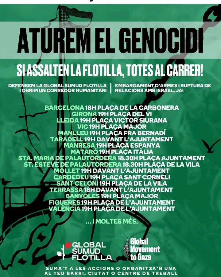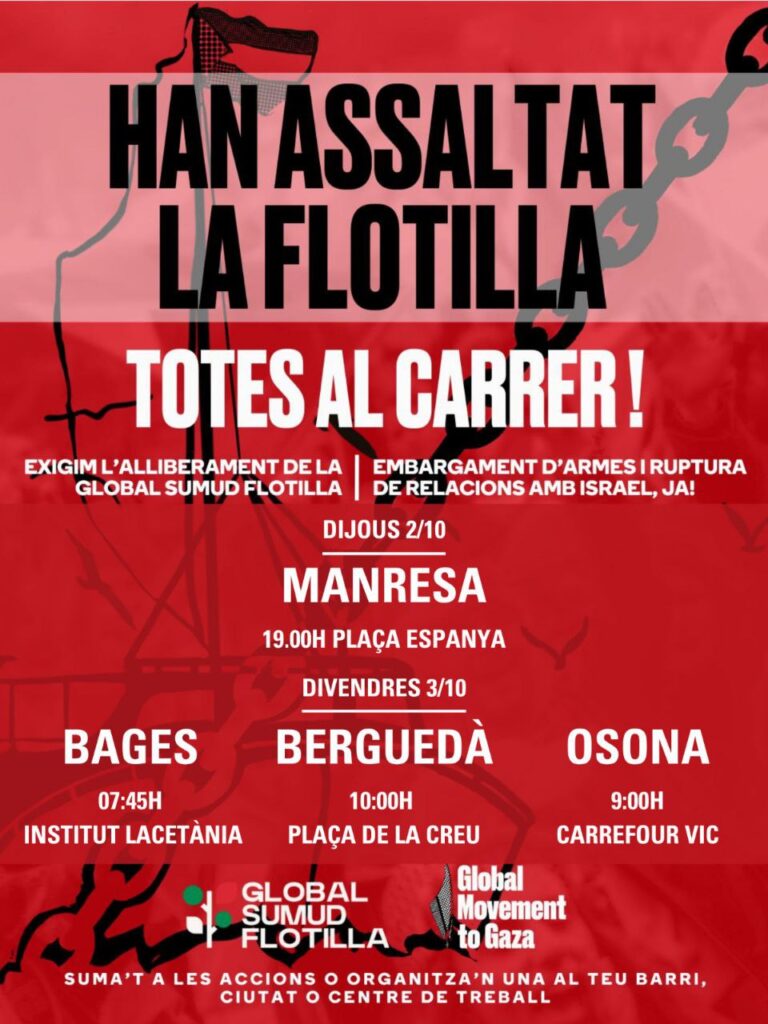 - Dijous 2 d’octubre: Convocatòria de tota la Catalunya Central a Manresa (excepte Osona): 19.00 a Plaça Espanya. A Osona: 19 h a la Plaça Major de Vic