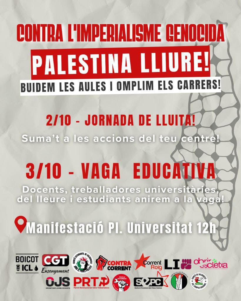 - Divendres 3 d’octubre: 12.00 h Manifestació unitària Plaça Universitat