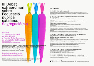 Amb el III Debat extraordinari sobre l’educació pública catalana. Segregació(ns) en primer lloc volem mostrar la realitat polièdrica, complexa i plural de les segregacions, i disseccionar-la en el context escolar. En segon lloc, volem assenyalar aquelles eines polítiques i institucionals que contribueixen a consolidar-les de manera estructural i que sovint són omeses del debat sobre la segregació. I, finalment, propiciem un debat obert i transparent que no defuig ni els temes clau ni les contradiccions, i que dona veu per igual a educadors, alumnes, famílies i ciutadania.