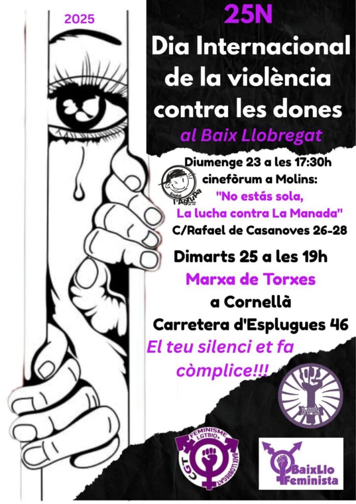 El dia 25N a Cornellà, carretera d’Esplugues 46 a les 19 h us esperem per reivindicar i denunciar més que mai, l’erradicació de les violències de gènere.