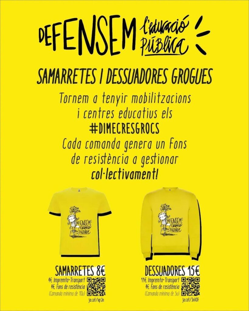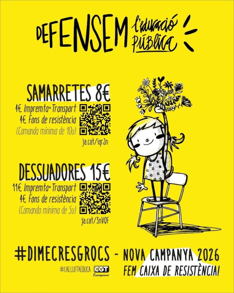 🔗 Més informació: https://www.cgtensenyament.cat/campanya-de-samarretes-i-dessuadores-grogues/