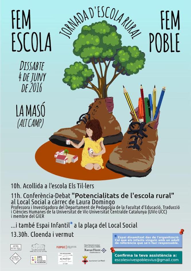 El dissabte 4 de juny, es va realitzar a la Masó la jornada d’escoles rurals “Fem escola, fem poble”. La jornada la van organitzar les ampes de la ZER El Francolí, amb la col·laboració del Grup Interuniversitari de l’Escola Rural (GIER). L’acte s’ha dut a terme en un moment important per a aquesta ZER (formada per les escoles Els Til·lers, de la Masó, i Rocabruna, de Picamoixons), ja que l’any vinent s’hi incorporaran la Riba i Mont-ral, que reobrirà l’escola després d’estar tancada 18 anys.