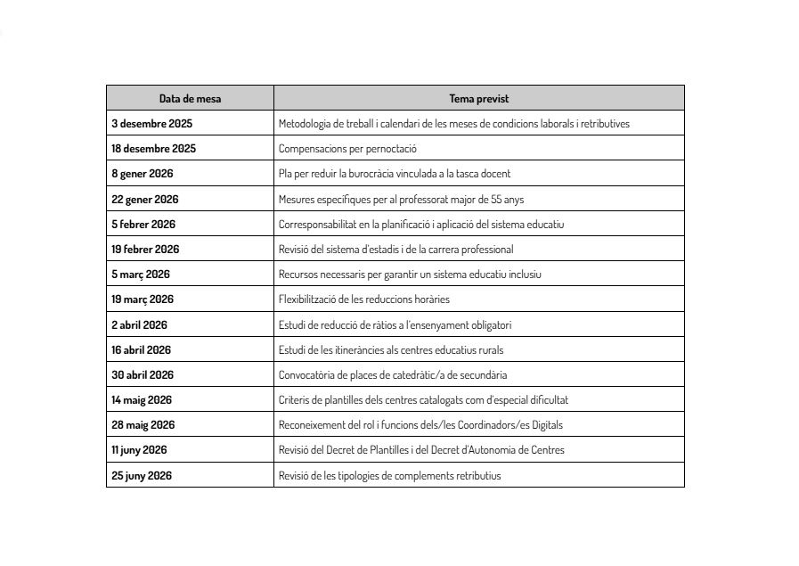 L’èxit assolit ens va permetre plantar cara al Departament amb un acord unitari dels sindicats, rebutjant una mesa sectorial —la del dimarts 18 de novembre— que no responia en absolut a les reivindicacions urgents del sector. La pressió ha funcionat: de seguida el Departament ha hagut de moure fitxa i ens ha fet arribar una proposta calendaritzada de meses sectorials. Però encara no aborda les necessitats reals de les treballadores i treballadors, pretén dilatar la negociació durant tot el curs i diluir la pressió que tenen.