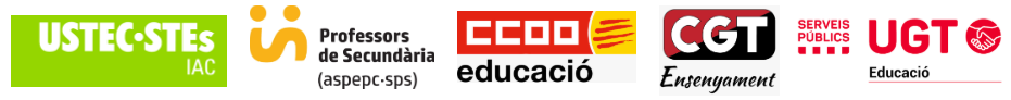 Davant d’aquesta manca de voluntat real de negociació, creiem necessari redoblar la pressió. Per això, USTEC·STEs (IAC), Professors de Secundària (ASPEPC-SPS), CCOO, CGT i UGT, els sindicats de la mesa, anunciem que, si el Departament no rectifica:
